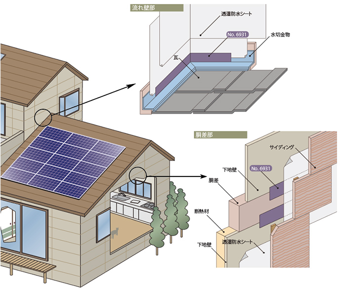 建築過程における、防水及び気密が必要な部位に対しての使用を目的として開発されたテープです。
